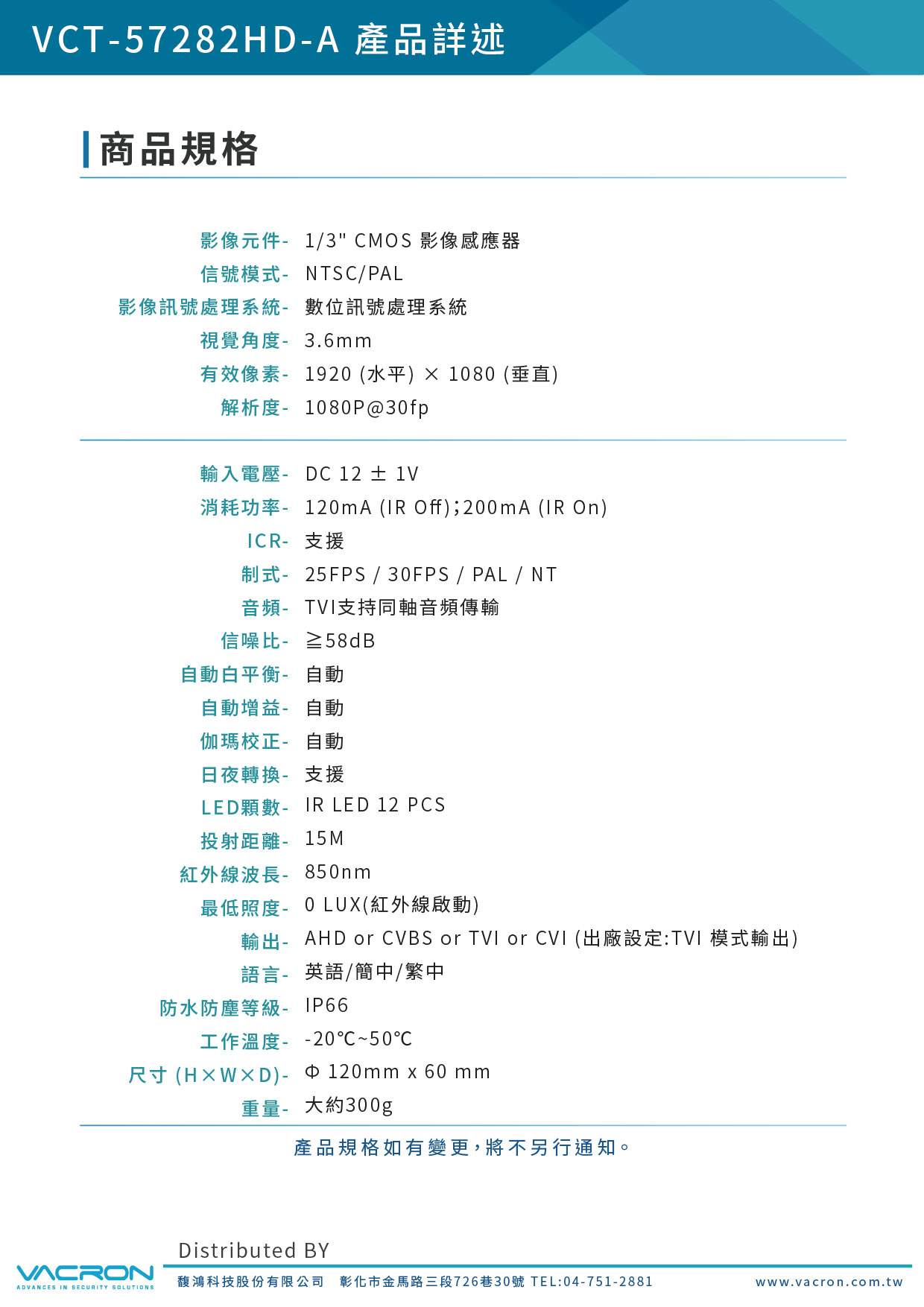 - AHD 1080p 畫質,有效畫素達1920x1080
