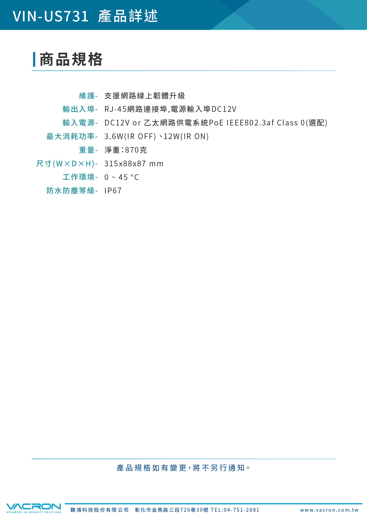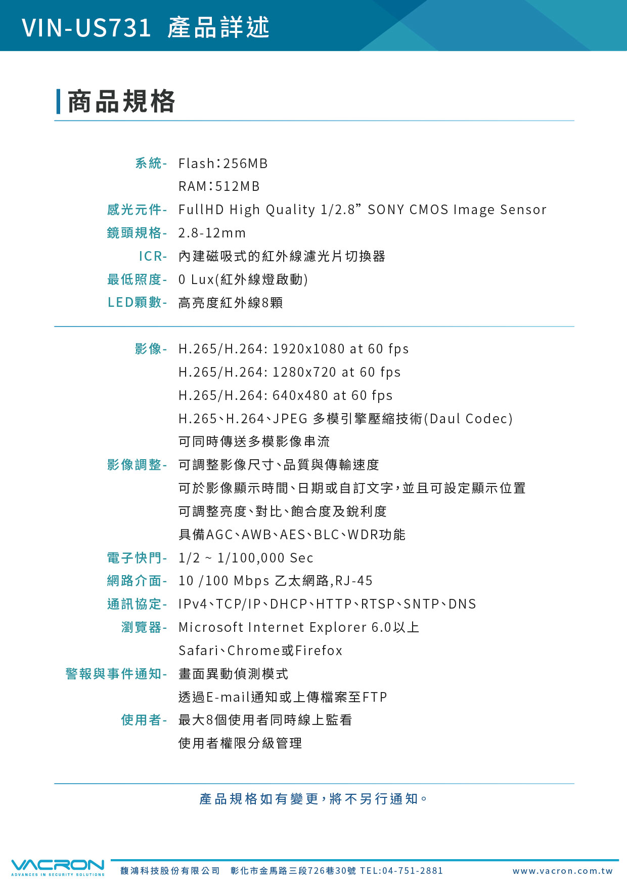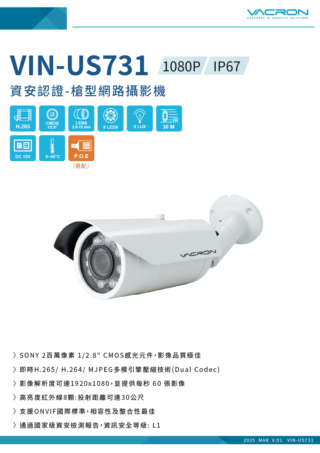 - 支援 ONVIF 國際標準,相容性及整合性最佳
