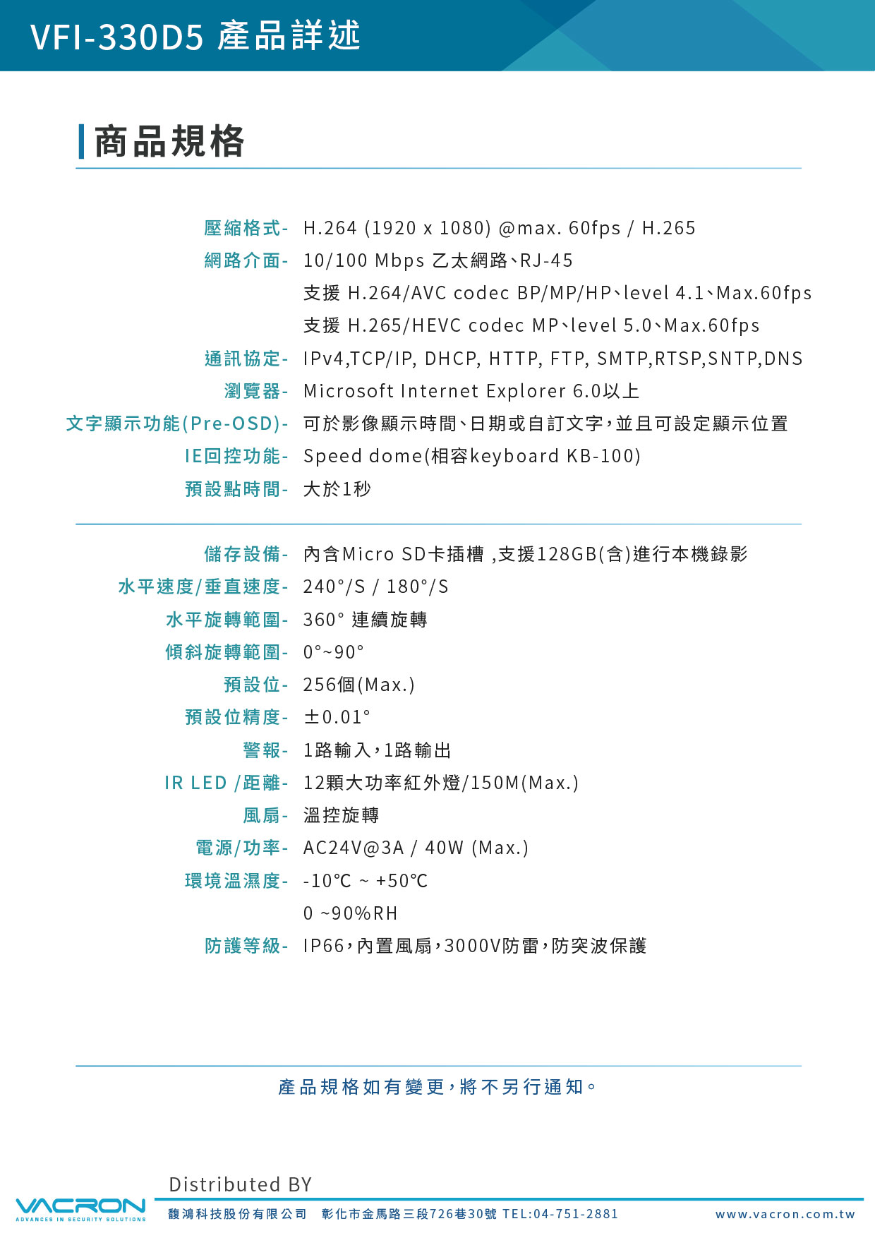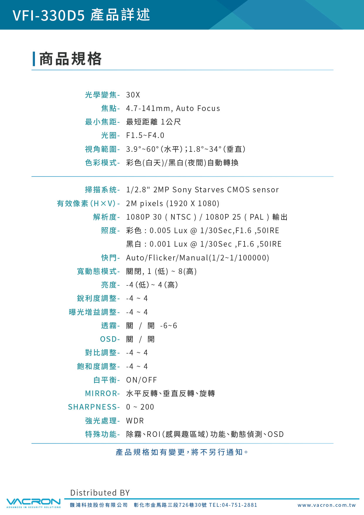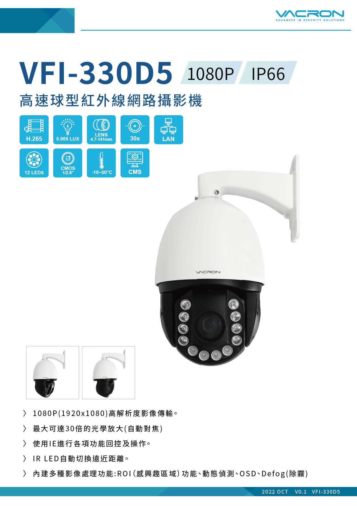 - 內建多種影像處理功能 : ROI(感興趣區域)功能、動態偵測、OSD、Defog(除霧)