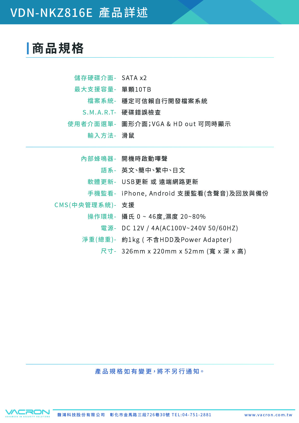操作環境 | 攝氏 0~46度,濕度 20~80% | ||||