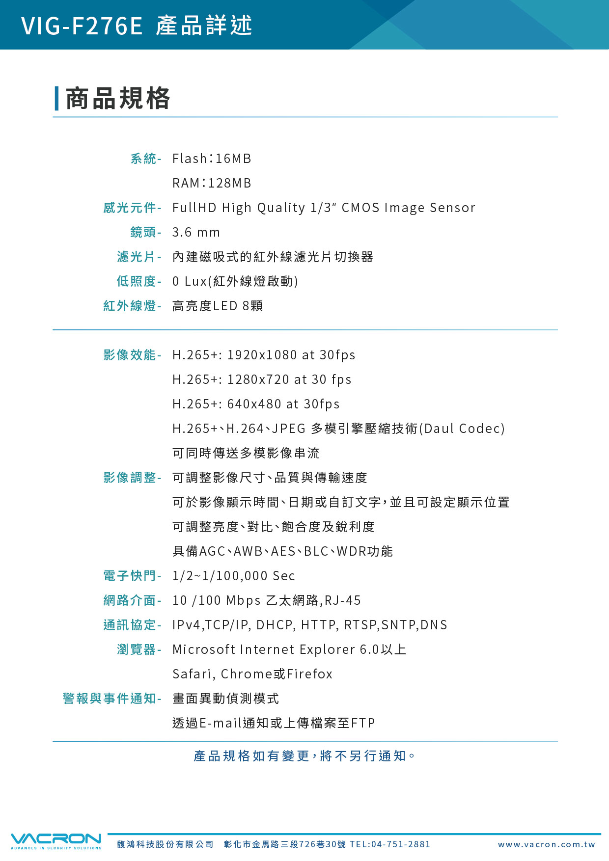 通訊協定 | IPv4,TCP/IP, DHCP, HTTP, RTSP,SNTP,DNS | |||