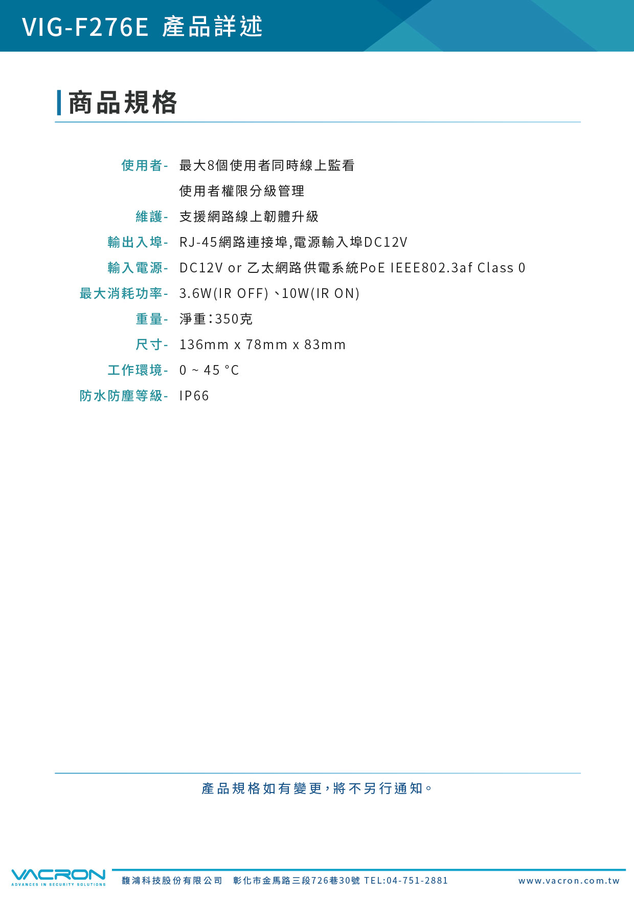 - 支援ONVIF國際標準,相容性及整合性最佳