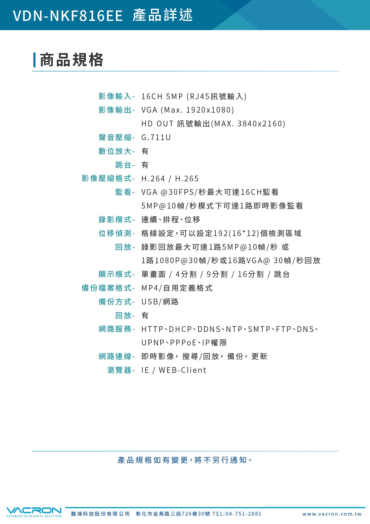 品名:16CH 5MP 影音錄影系統