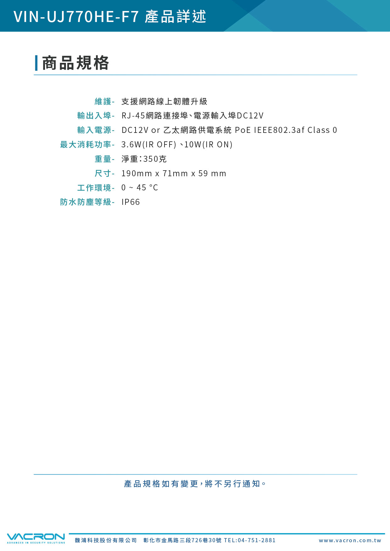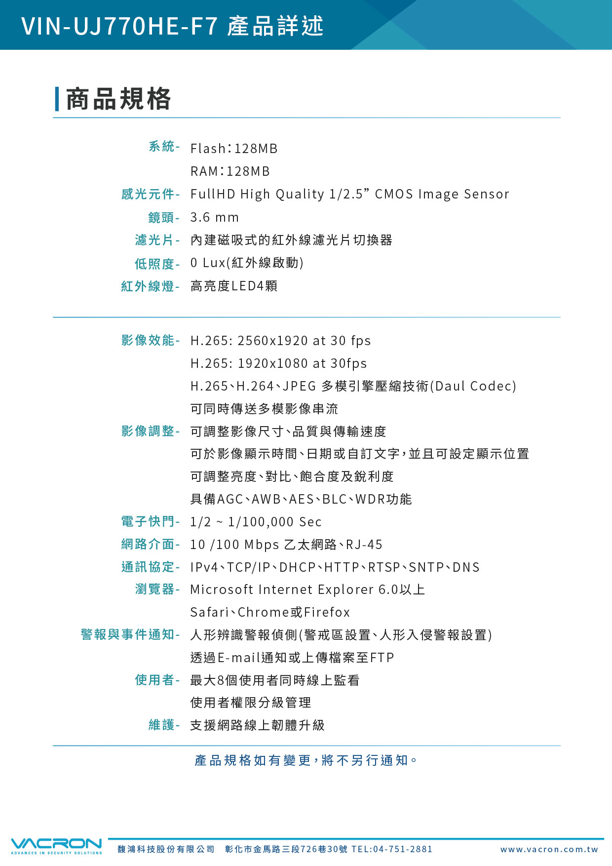 - 支援ONVIF國際標準,相容性及整合性最佳