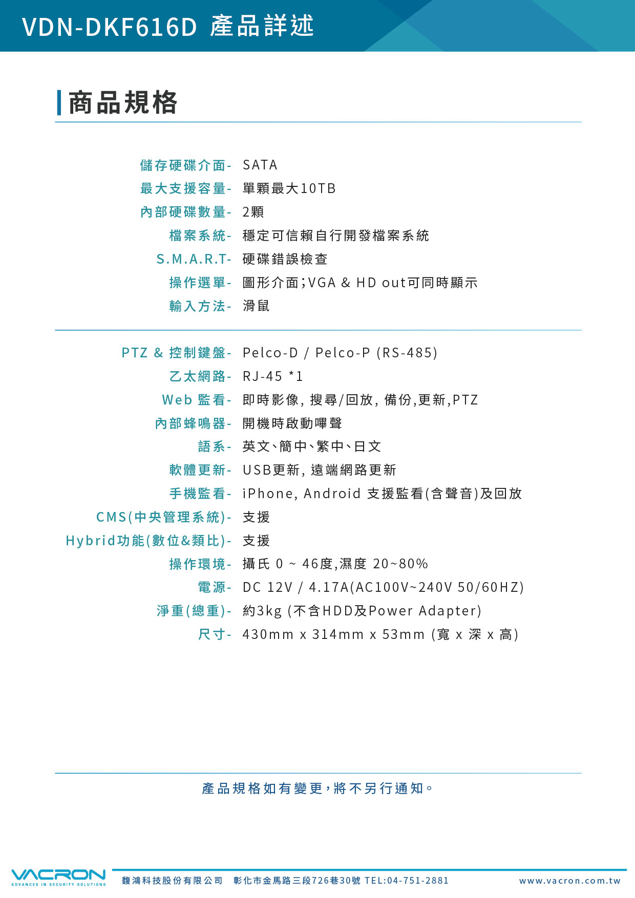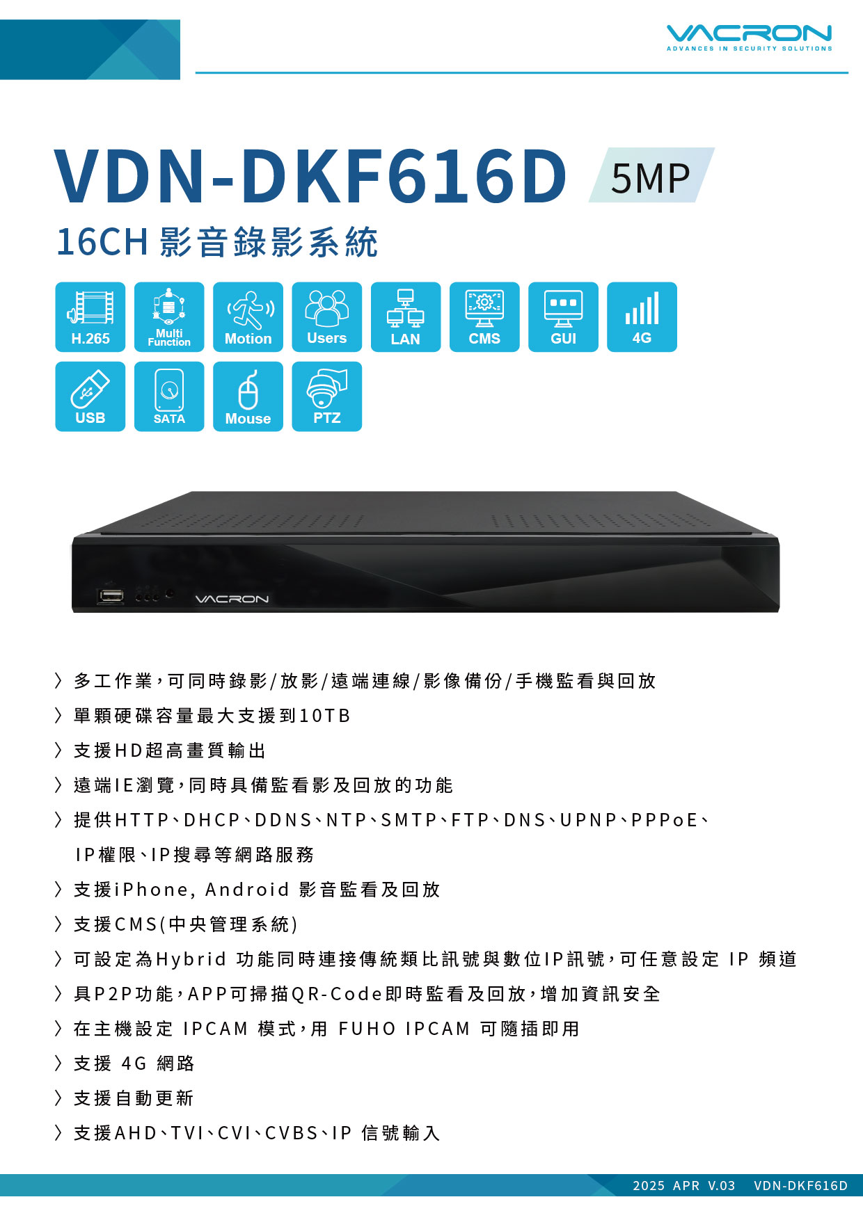 • 多工作業,可同時錄影 / 放影 / 遠端連線 /  影像備份 / 手機監看與回放