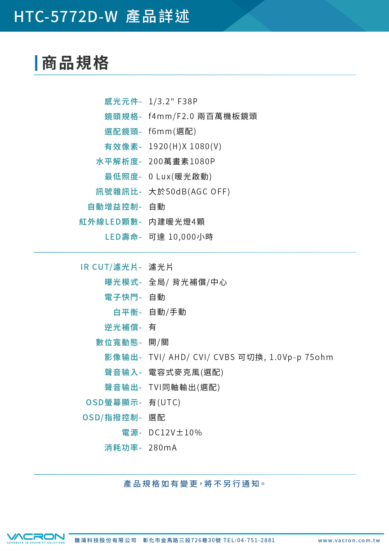 - AHD/TVI/CVI 1080P高畫質影像輸出