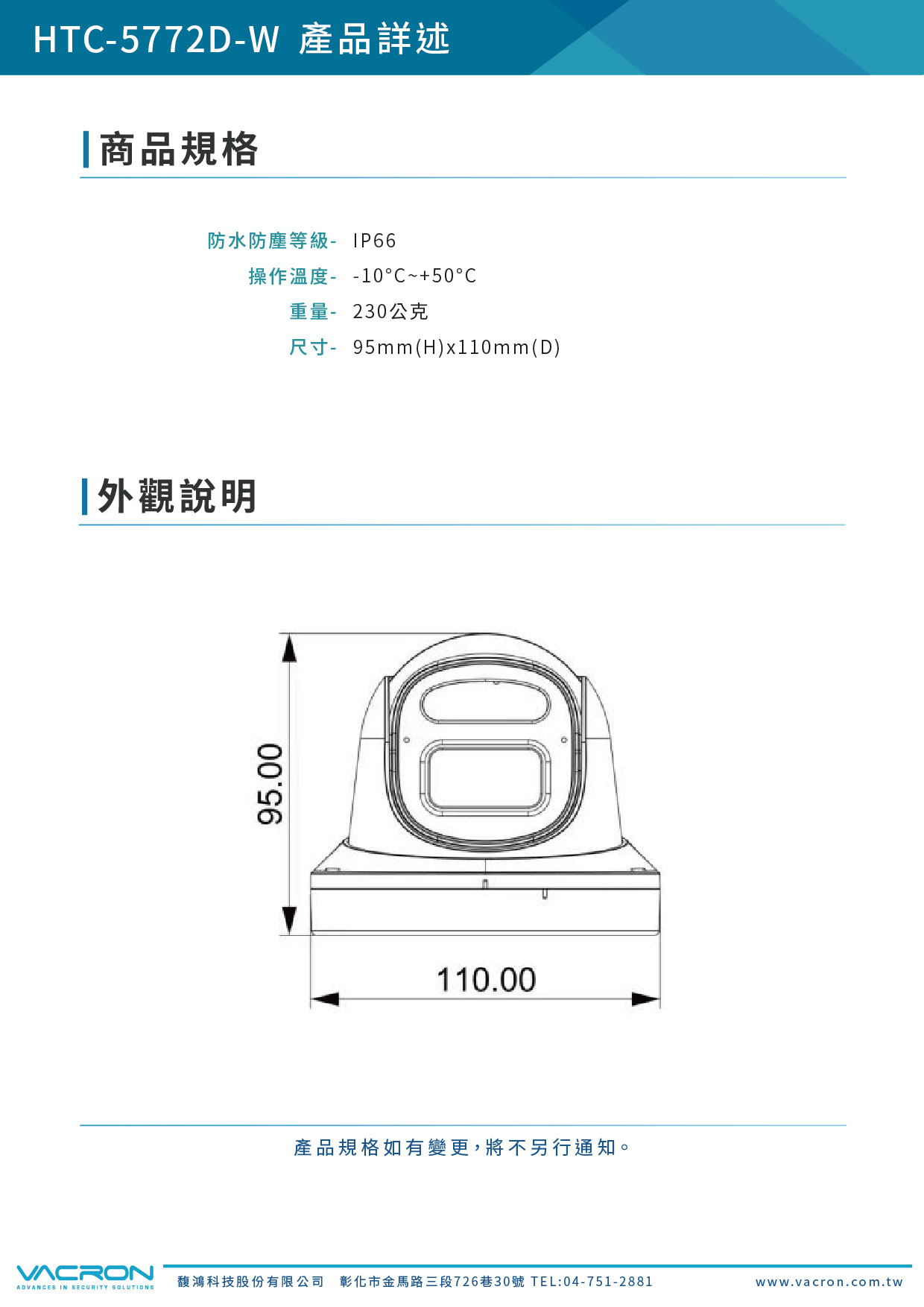 影像輸出 | TVI/ AHD/ CVI/ CVBS 可切換, 1.0Vp-p 75ohm | |||