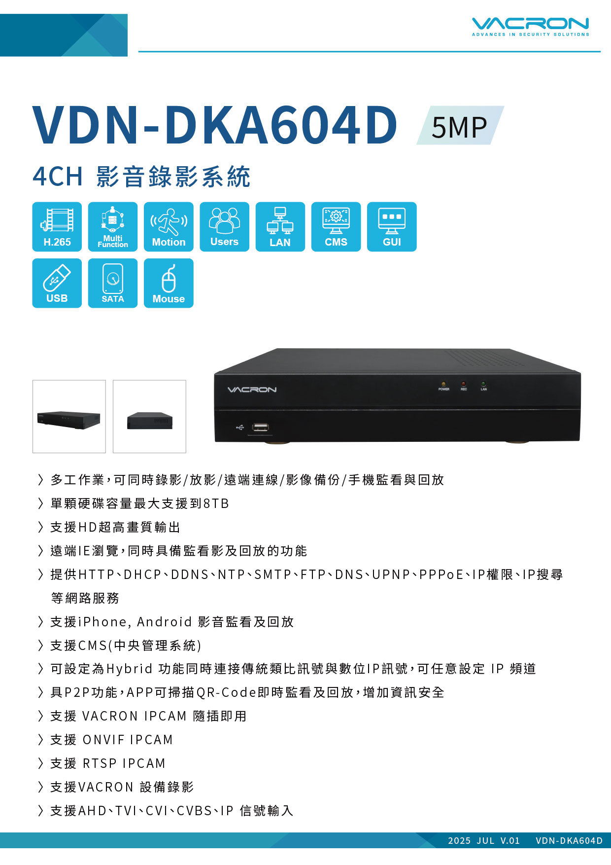 - 多工作業,可同時錄影 / 放影 / 遠端連線 / 影像備份 / 手機監看與回放