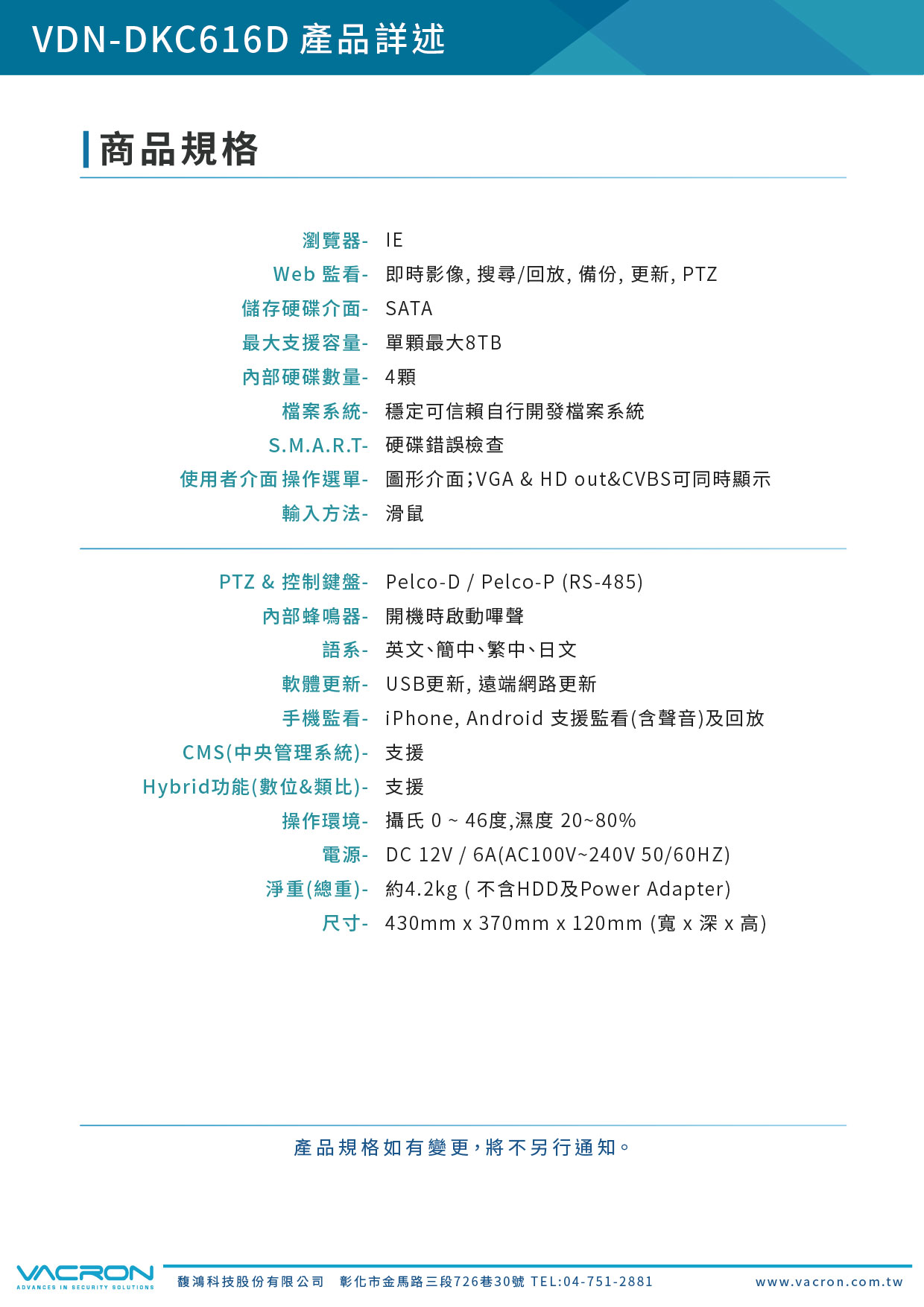 • 具P2P功能,APP可掃描QR-Code即時監看及回放,增加資訊安全
