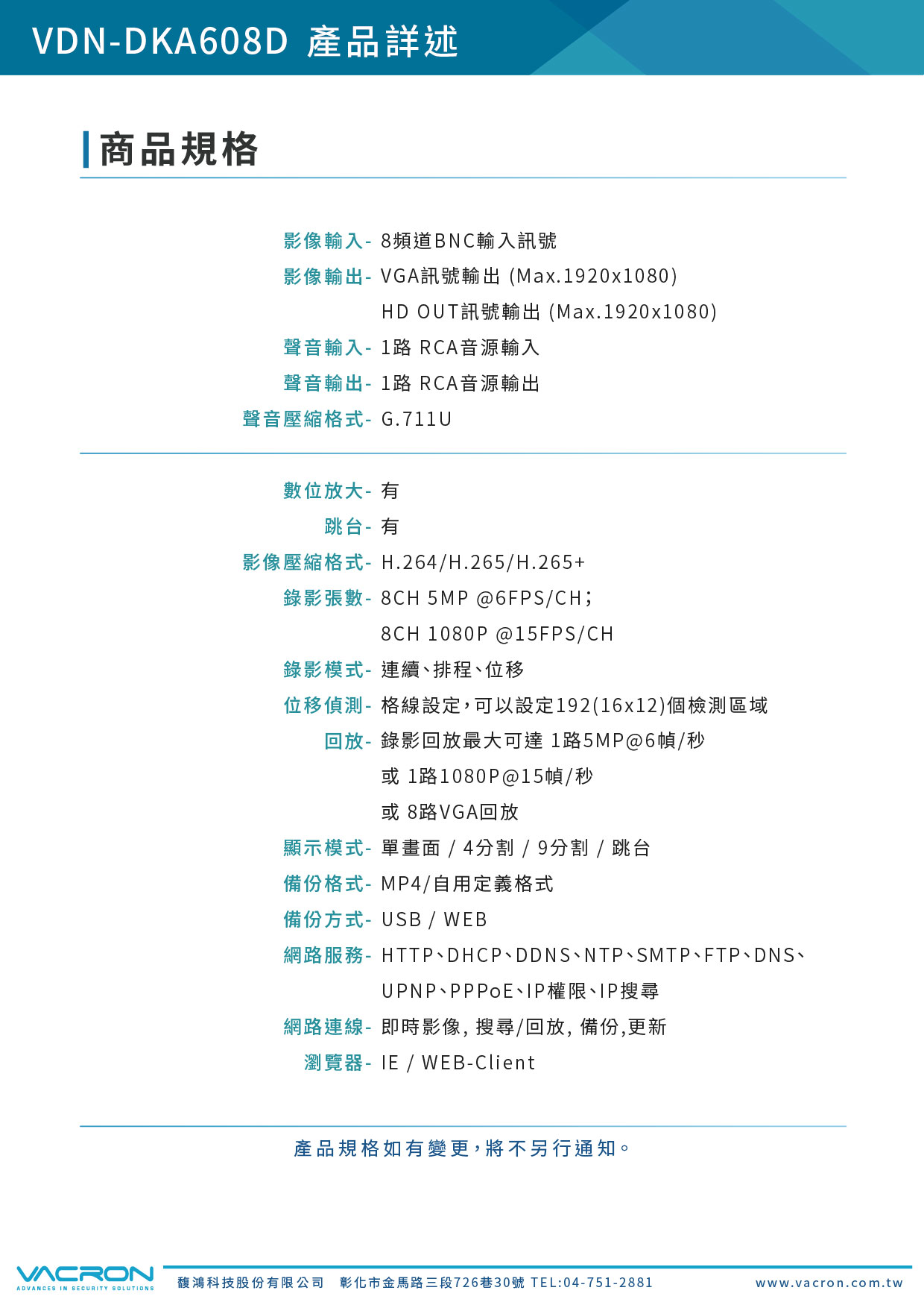 - 多工作業,可同時錄影 / 放影 / 遠端連線 / 影像備份 / 手機監看與回放