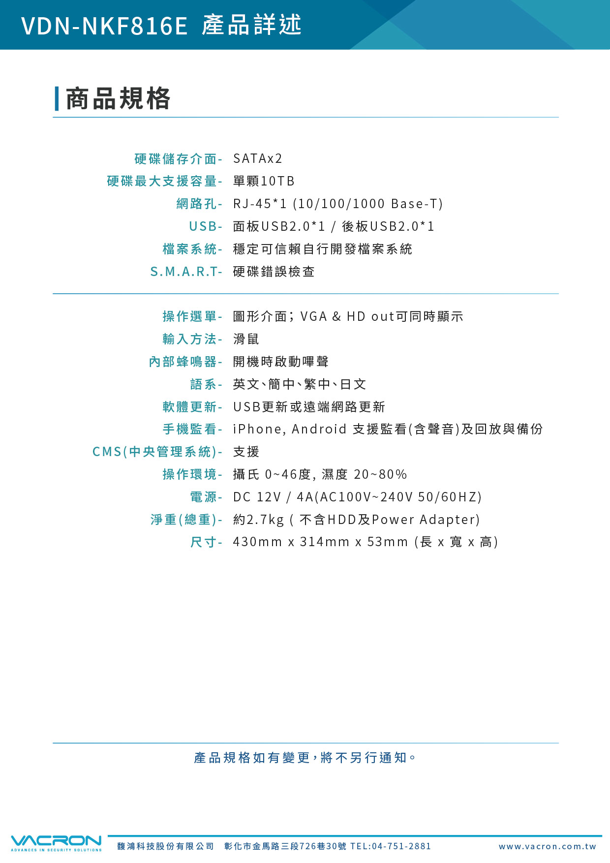 淨重(總重) | 約2.7kg (不含HDD及Power Adapter) | ||||
