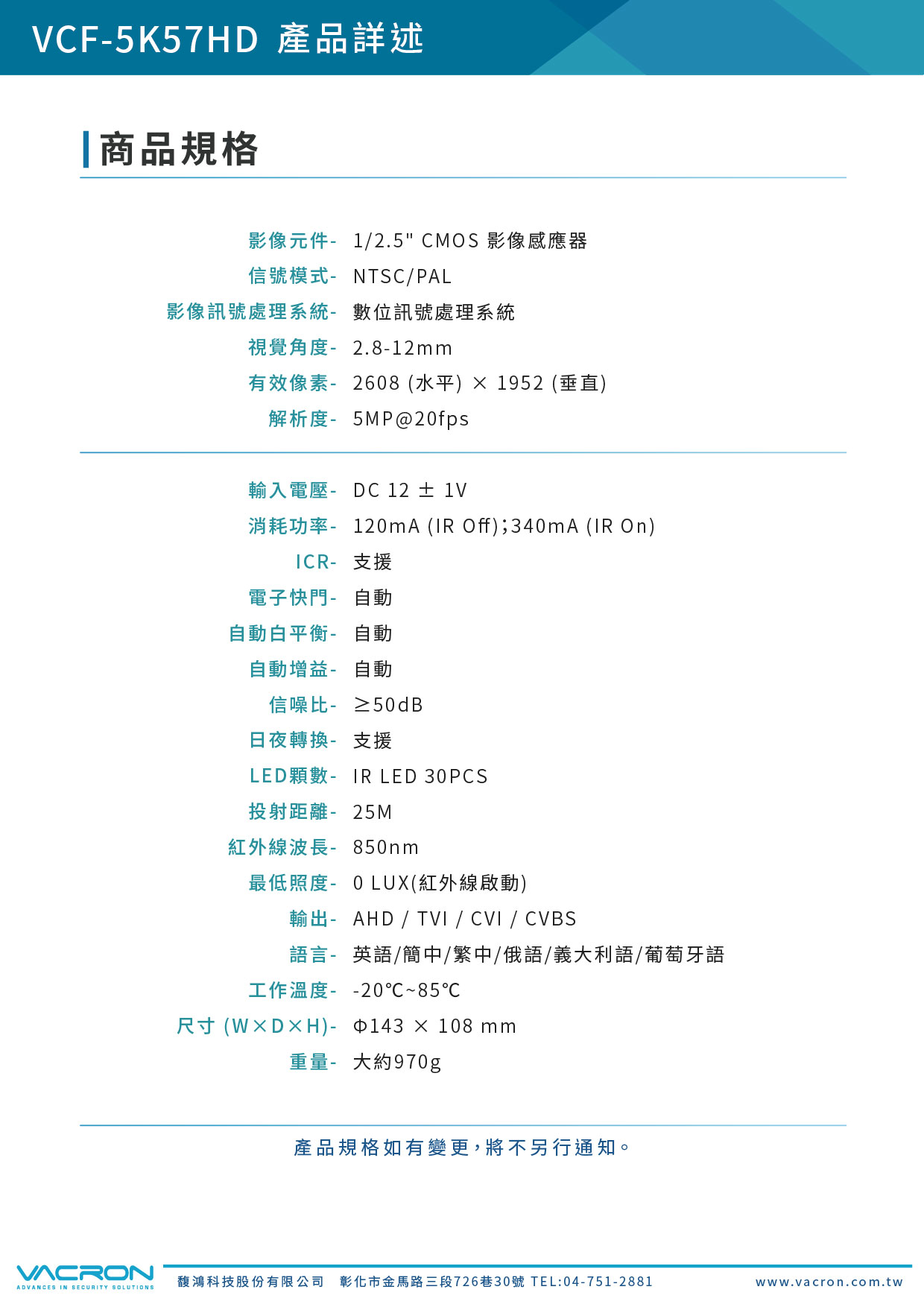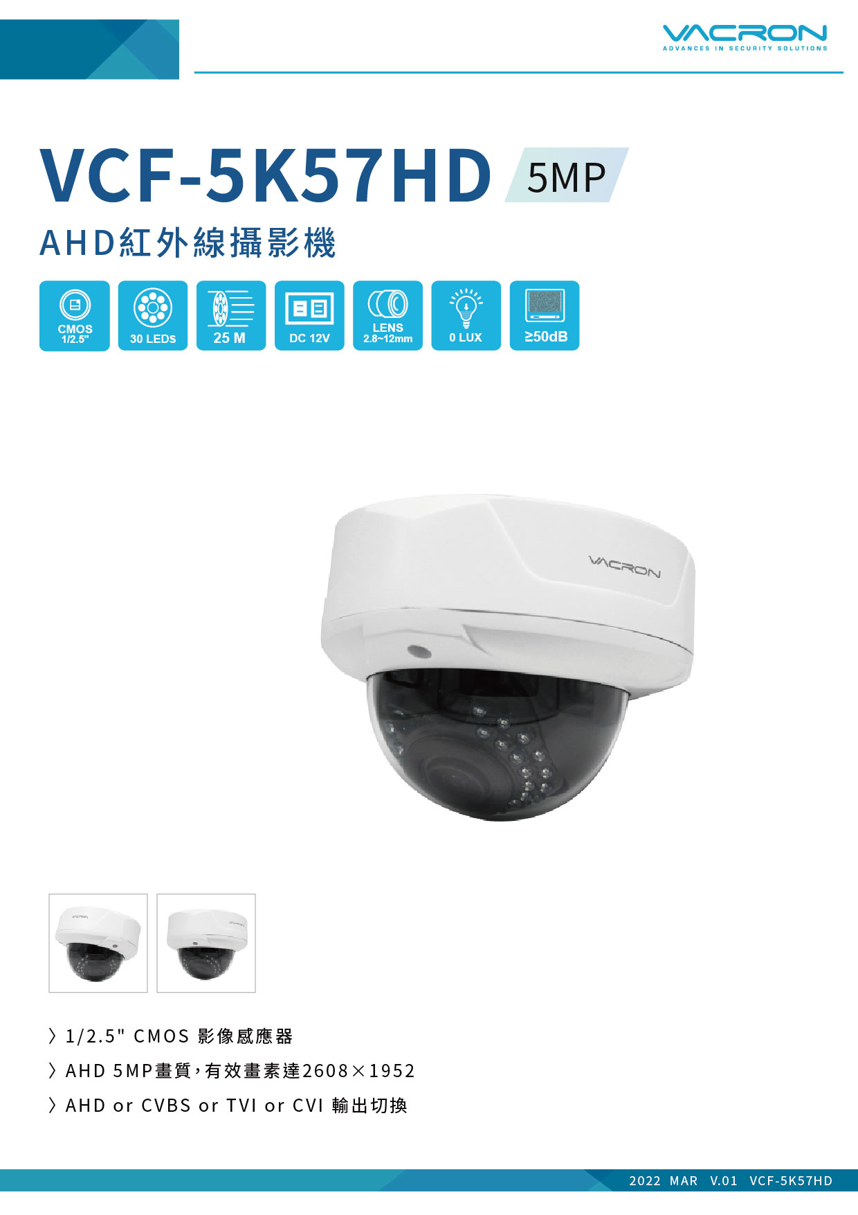 - AHD 5MP 畫質,有效畫素達 2608 × 1952