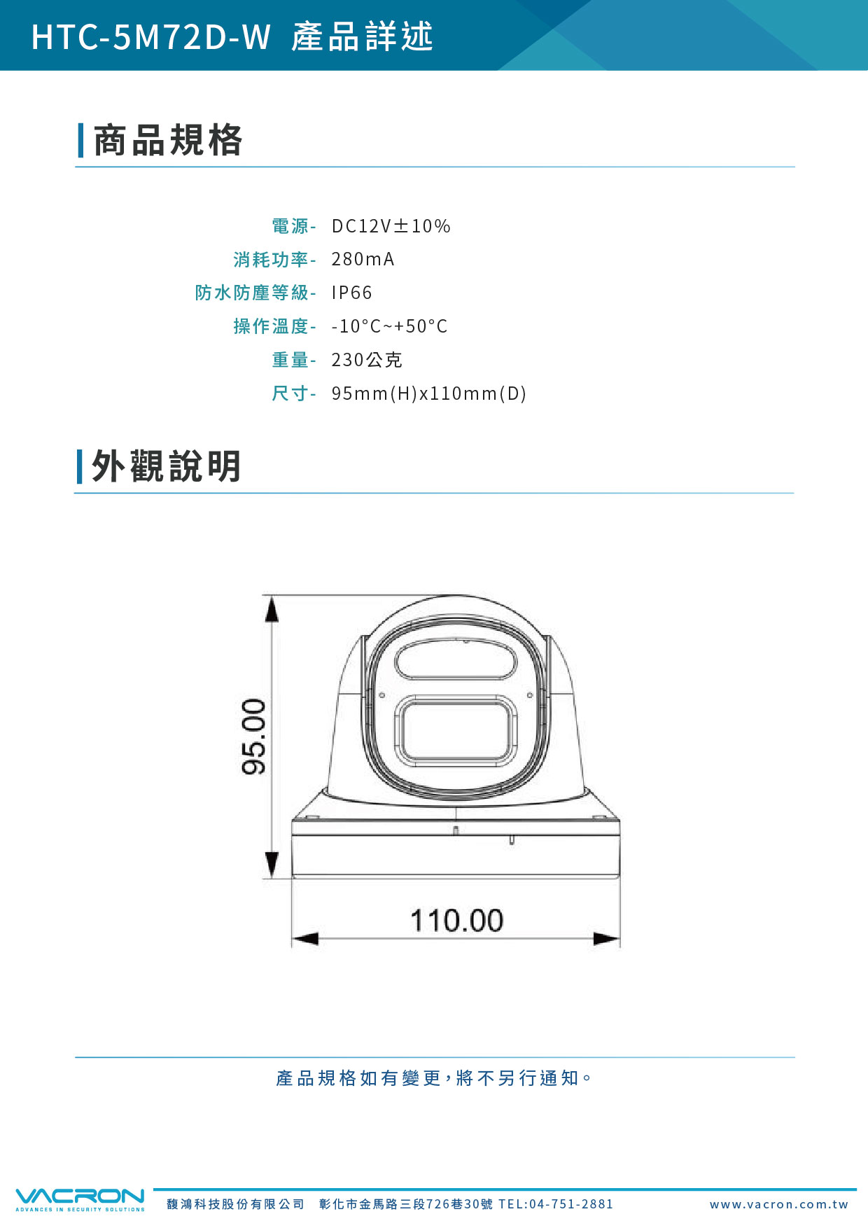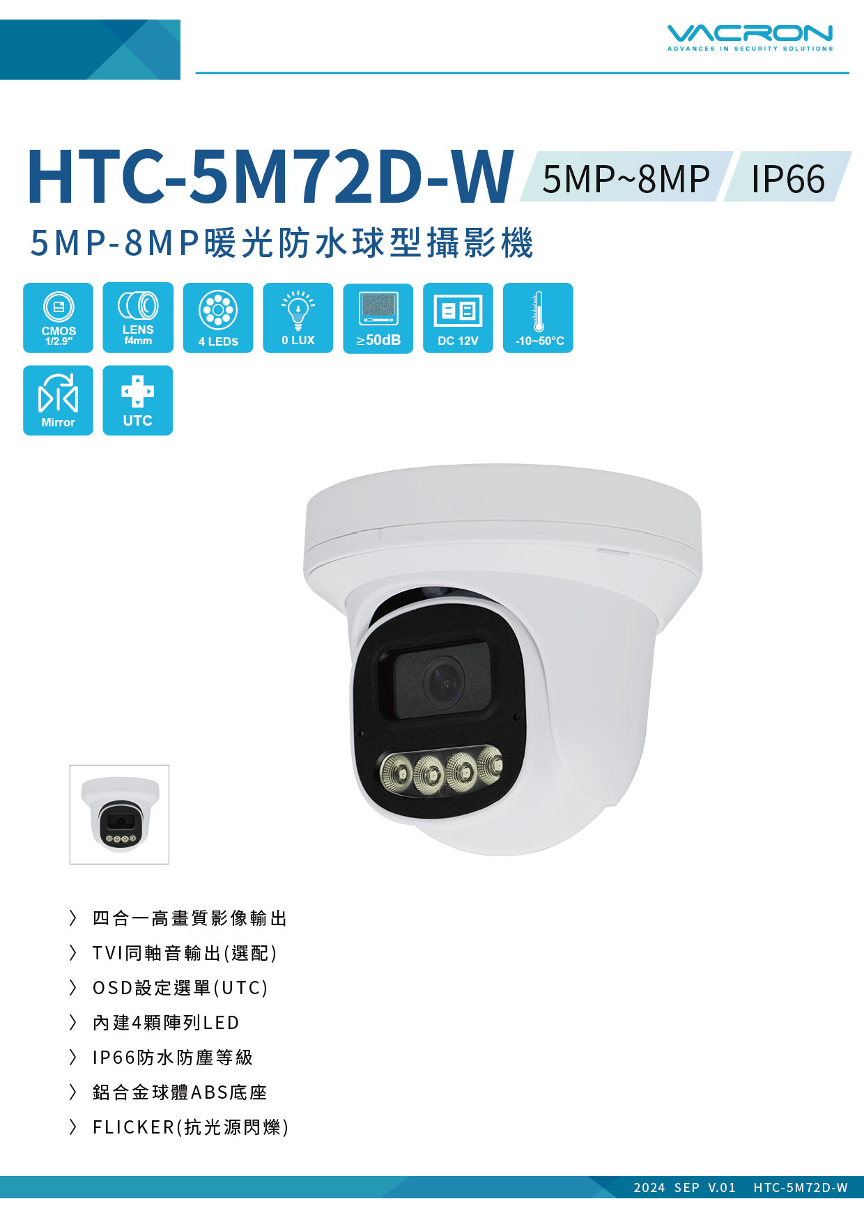 品名:5MP-8MP IP66暖光防水球型攝影機