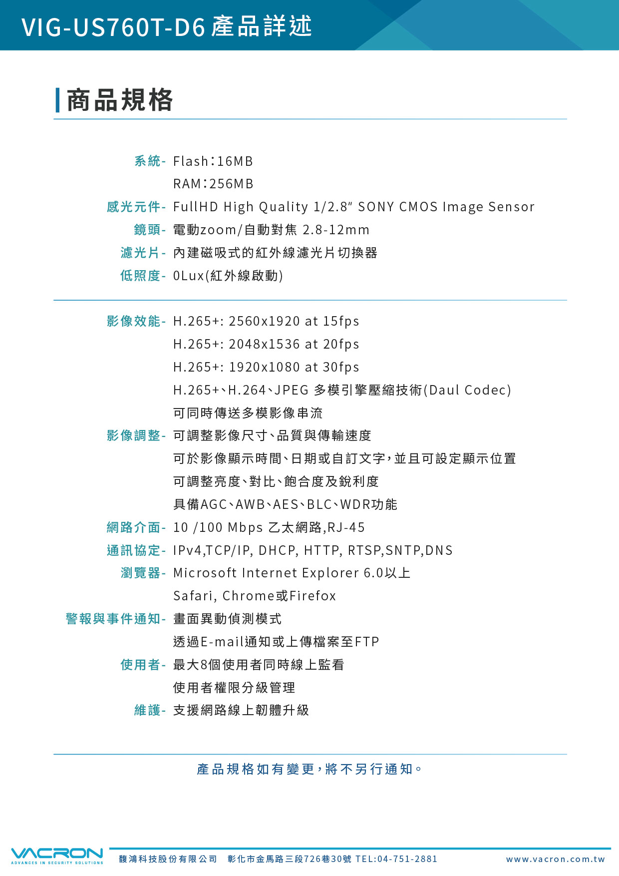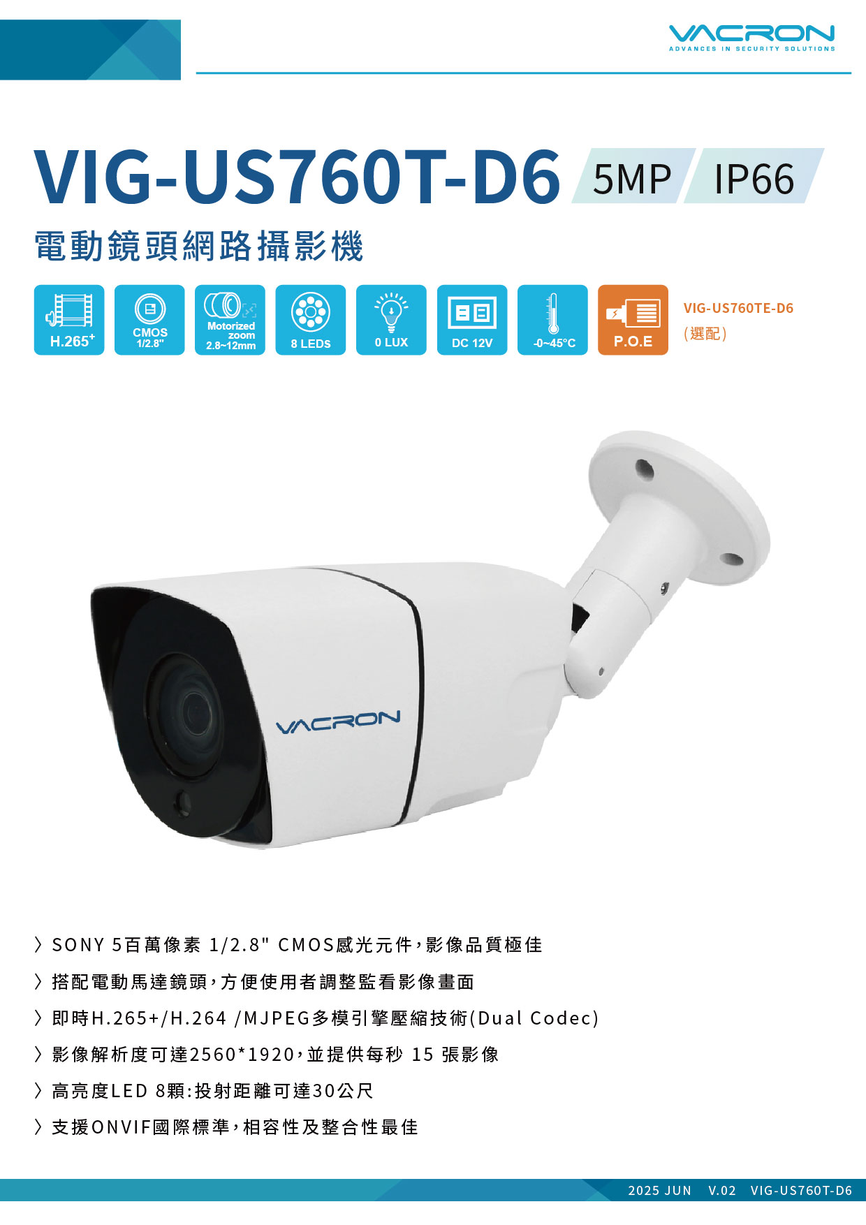 - 支援ONVIF國際標準,相容性及整合性最佳