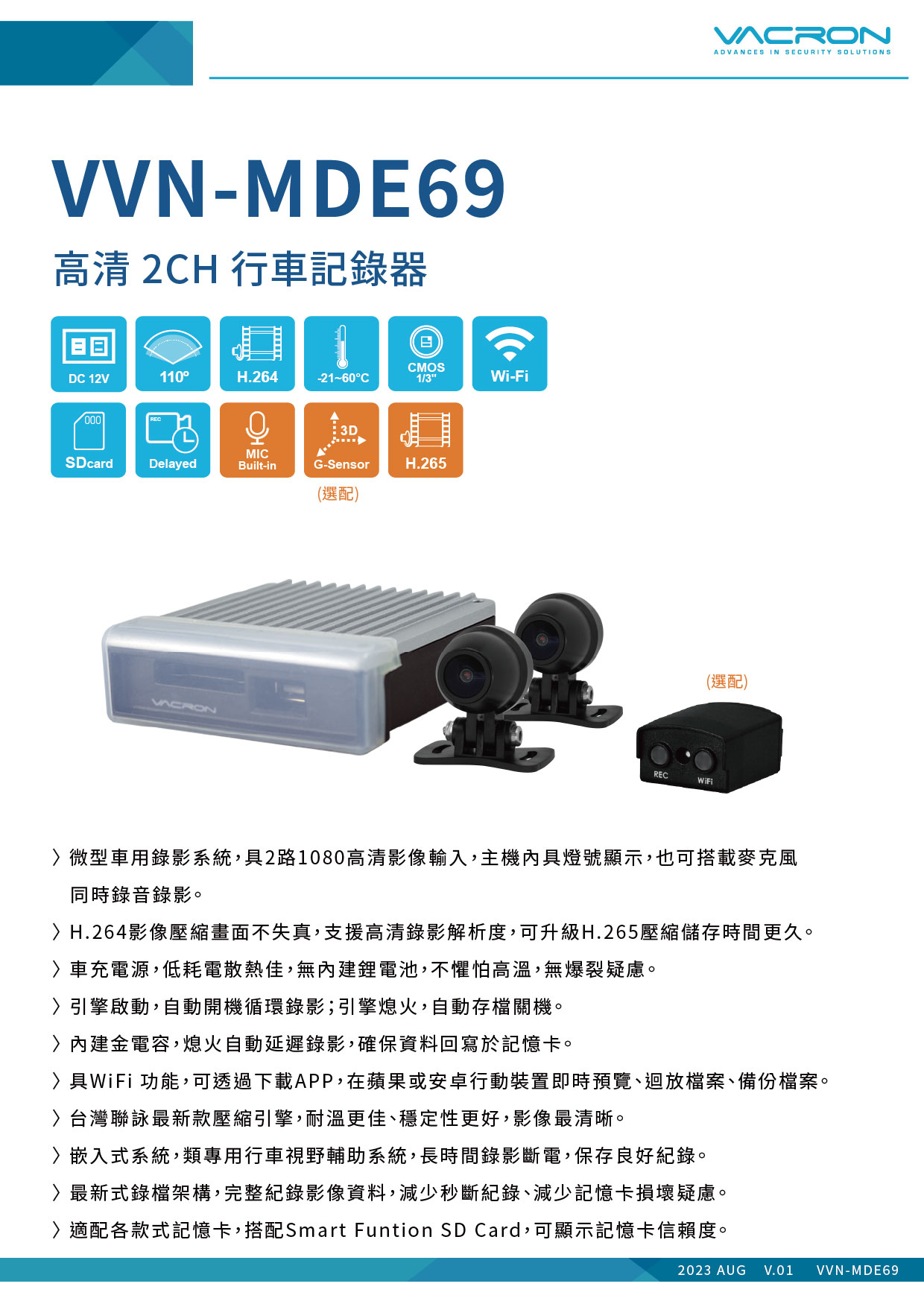 - 微型車用錄影系統,具2路1080高清影像輸入,主機內具燈號顯示,也可搭載麥克風