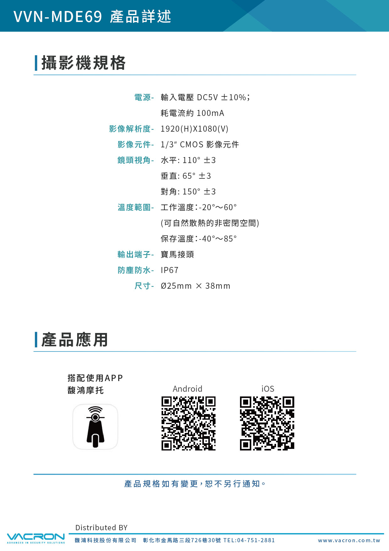 - 台灣聯詠最新款壓縮引擎,耐溫更佳、穩定性更好,影像最清晰。