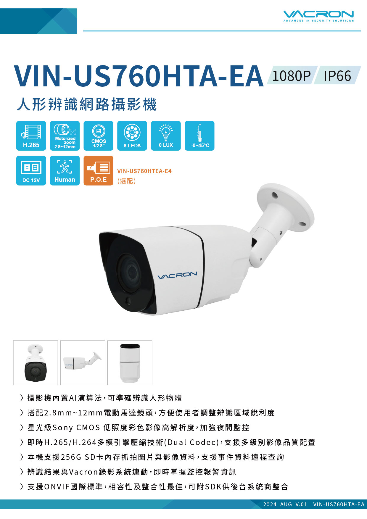 - 支援ONVIF國際標準,相容性及整合性最佳,可附SDK供後台系統商整合