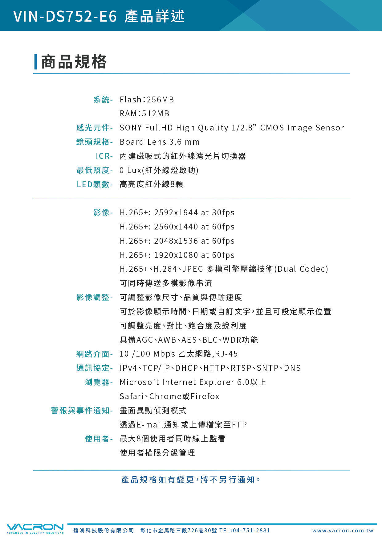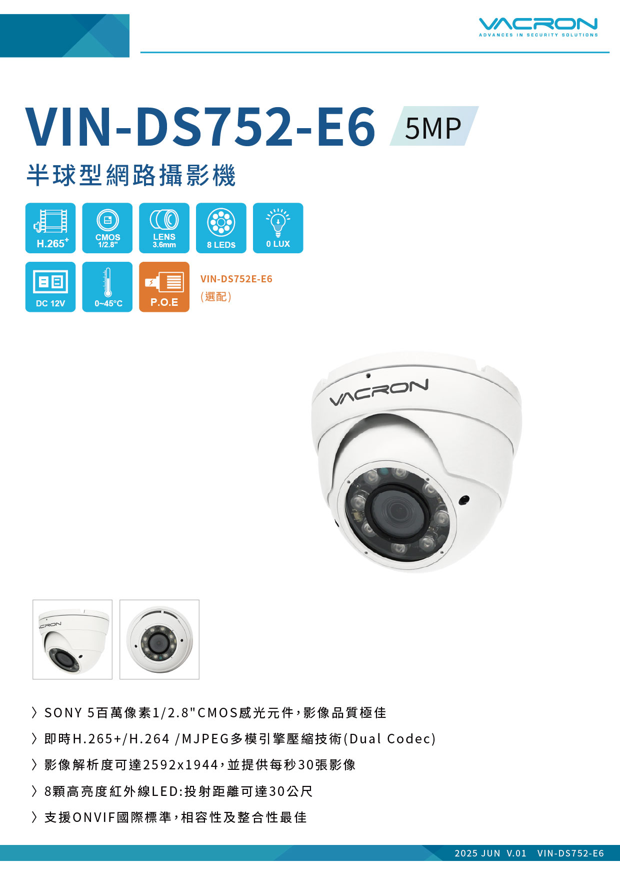 - 支援ONVIF國際標準,相容性及整合性最佳